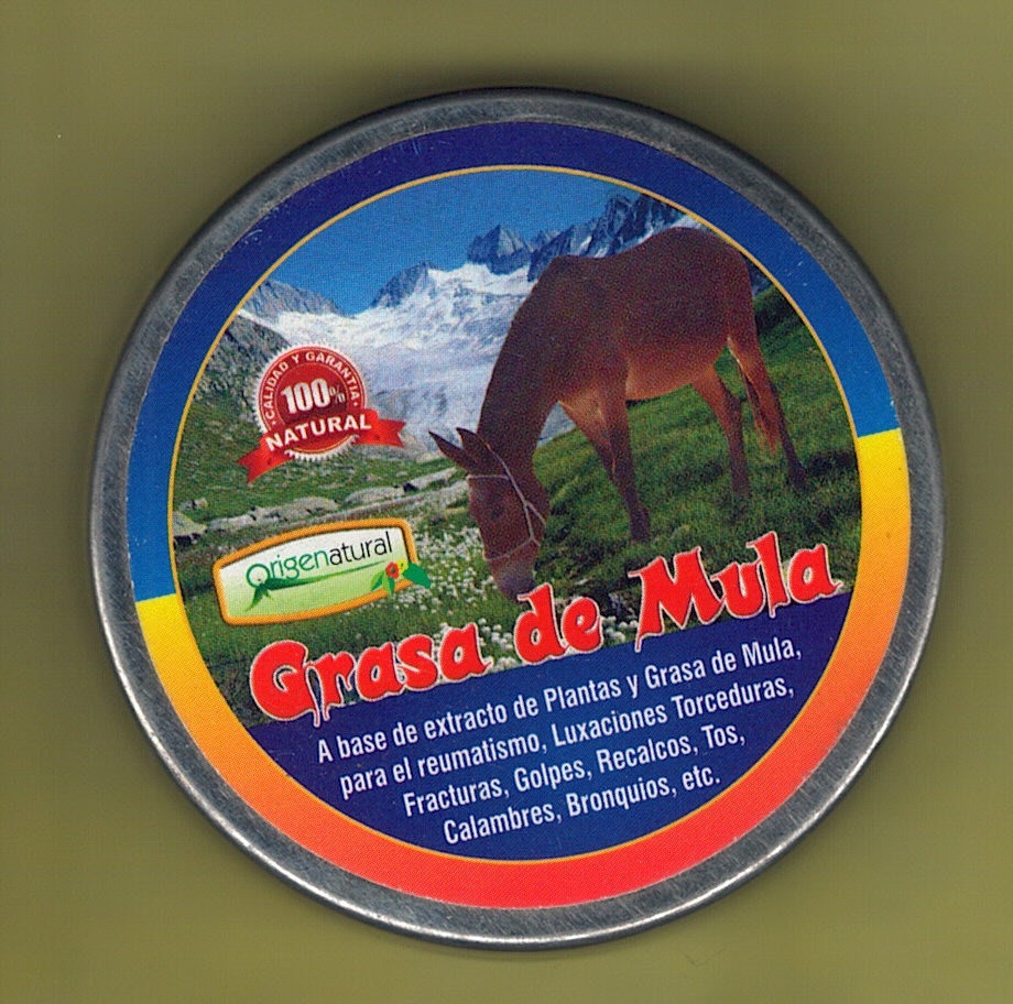 GRASA DE MULA PARA EL REUMATISMO, LUXACIONES, TORCEDURAS, DOLORES MUSCULARES, REUMATISMO, CALAMBRES, POTE TAMAÑO CHICO (20 GRAMOS