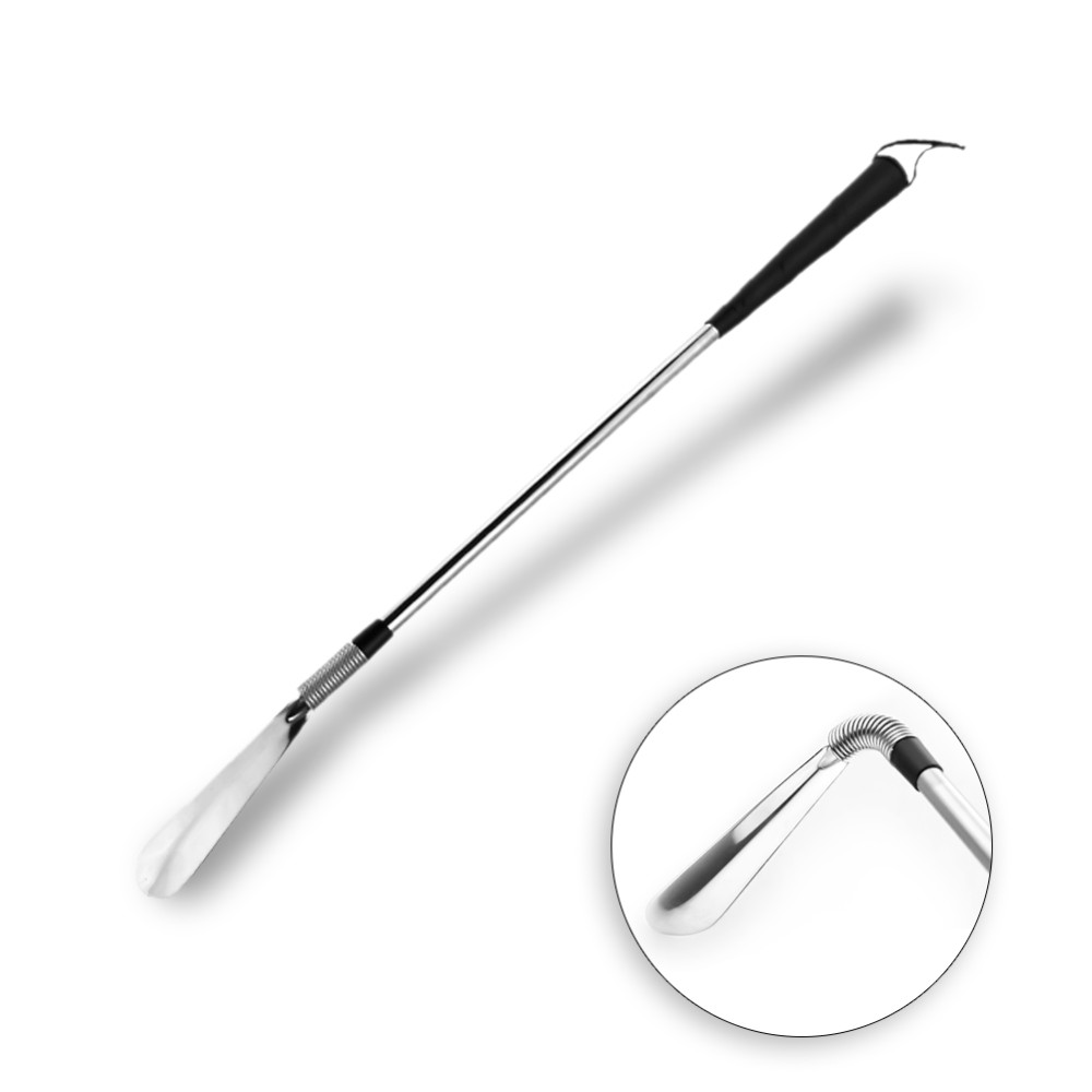 Descripción del producto Calzadores mango largo de metal acero inoxidable mediano color gris (30 centímetros) y mango extra largo de madera en tamaño largo (55 centímetros) en colores negro y café rojizo, que permiten a los adultos mayores, personas de la tercera edad o personas con determinados impedimentos físicos, una mayor comodidad en la colocación y ajuste de sus zapatos. Están fabricados de material metálico color plateado, de plástico y de madera color beige cobrizo con adornos vivos florales. Por otra parte el calzador fijo grueso de metal acero inoxidable y largo (60 cm.) posee un mango de plástico y una punta de ajuste con un resorte especial que le otorga flexibilidad en el ángulo de entrada al zapato. En stock también tenemos el calzador metálico extendible (ajustable entre 30 y 64 cm.). Se cuenta además con calzadores mango largo de plástico (47 cm.). Cabe destacar que los calzadores ayudan a evitar el desgaste de los zapatos, es decir, contribuyen a mantener una mayor vida útil de los mismos: sucede que al aplastarlos con el talón del pie, al intentar ponérselos sin el uso del calzador, se deterioran rápidamente. VER VIDEO SOBRE USO DE UN CALZADOR CHICO