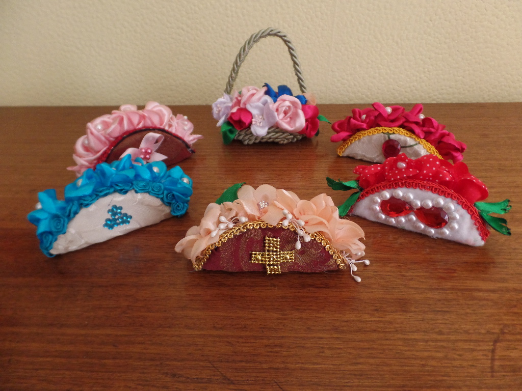 uno por uno; se eligen las perlas, los adornos con brillo, de acuerdo a la