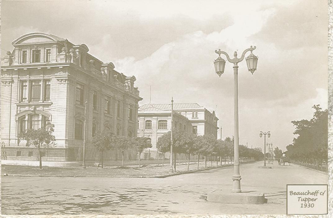 FAROLES UBICADOS EN CALLES BEAUCHEFF CON TUPPER, AÑO 1930. |