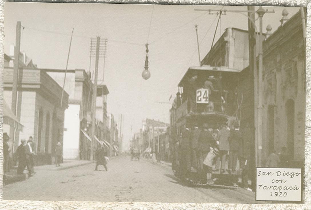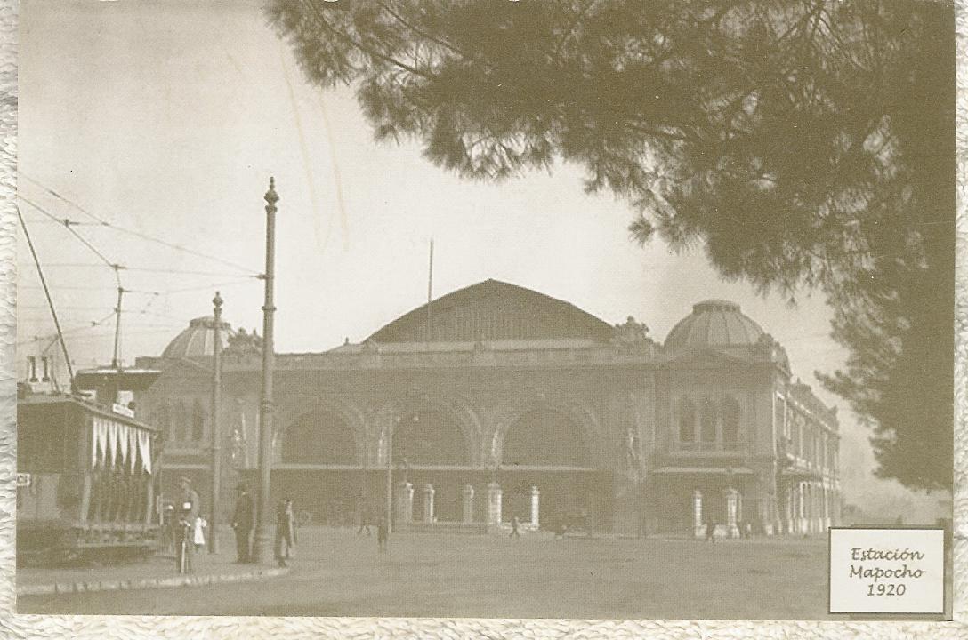 TRANVÍA Y PERSONAS FRENTE A LA ESTACIÓN MAPOCHO, AÑO 1920. |
