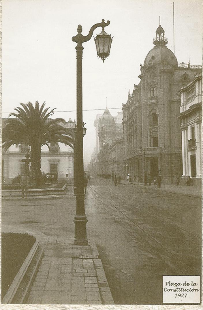 MORANDÉ, PLAZA DE LA CONSTITUCIÓN, FAROL Y PALMERA UBICADOS AL FRENTE