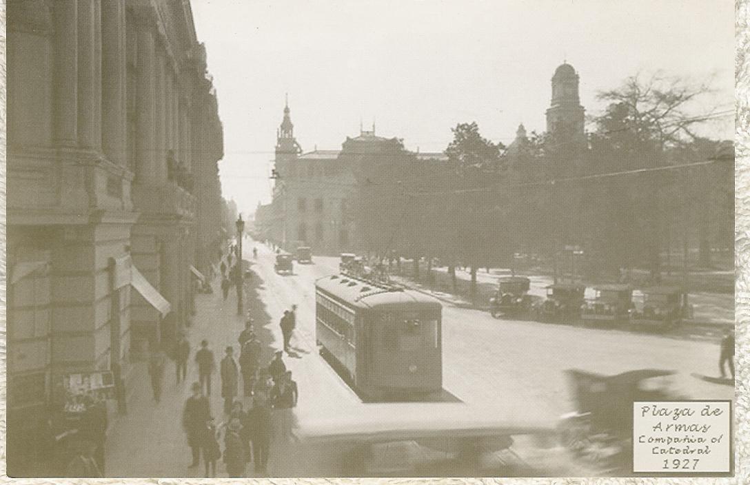 ALEMANA UBICADA EN PLAZA BAQUEDANO CON UN TRANVÍA AL FONDO AÑO 1926 EN