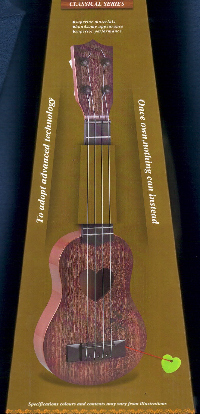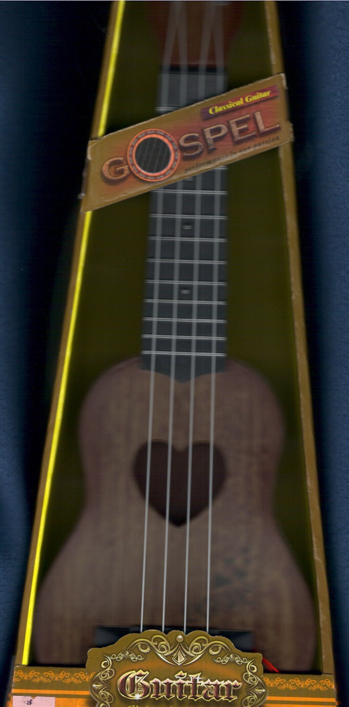 GUITARRITA CLÁSICA DE CUATRO CUERDAS PARA NIÑOS SOBRE 3 AÑOS, CON SONIDO MUY SIMILAR A LAS VERDADERAS LOGRA ATRAER SU ATENCIÓN, FABRICADA EN PLÁSTICO ESPECIAL QUE SIMULA MADERA, PARA INICIAR EL APRENDIZAJE DESDE PEQUEÑO, MARCA GOSPEL, CON DISEÑO DE CUERDAS AJUSTABLES / ESTILO GUITARRA CLÁSICA / TAMAÑO APROXIMADO 5 X 15 X 43 CENTÍMETROS, FABRICACIÓN CHINA / VIENE EN UNA CAJA CON ASIDERA, ESPECIAL PARA EL TRASLADO.