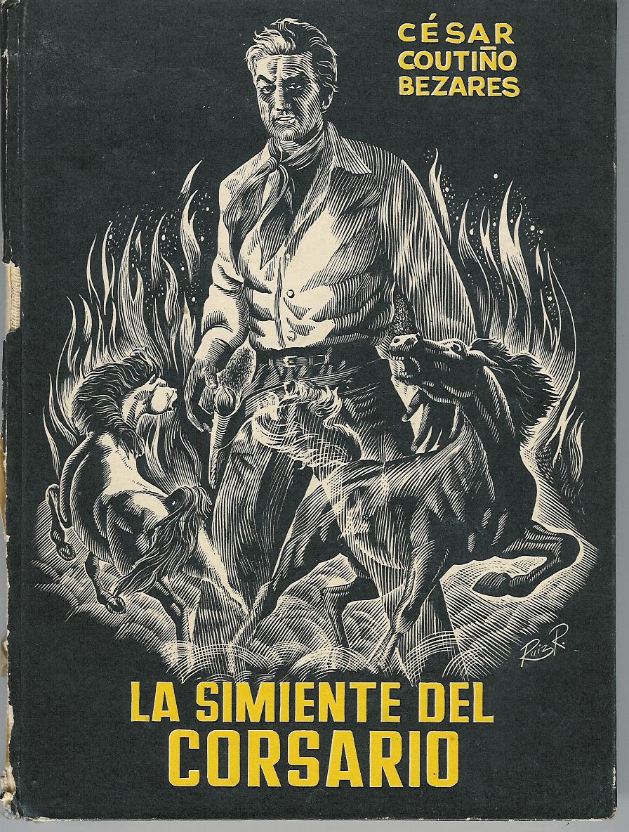 LIBRO "LA SIMIENTE DEL CORSARIO" DE CÉSAR COUTIÑO BEZARES, PORTADA DE RUIZ R., TAPAS DURAS EDITORA LATINO AMERICANA S.A., MÉXICO, 6 DE MAYO DE 1958.