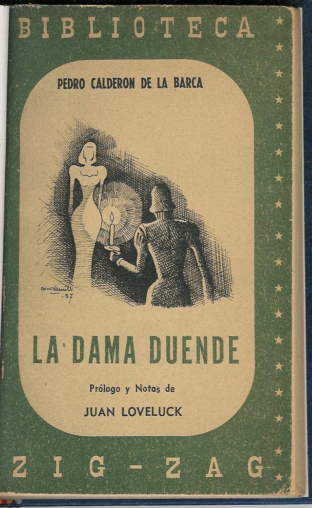 LIBRO "LA DAMA DUENDE", DE PEDRO CALDERÓN DE LA BARCA, COLECCIÓN BIBLIOTECA CULTURA, EMPRESA EDITORA  ZIG ZAG S.A., PRÓLOGO Y NOTAS DE JUAN LOVELUCK M, DE LA UNIVERSIDAD DE CONCEPCIÓN, EMPASTADO, SANTIAGO DE CHILE, 1957.