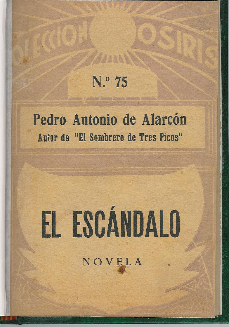 LIBRO "EL ESCÁNDALO", ESCRITO POR PEDRO ANTONIO DE ALARCÓN DE LA REAL ACADEMIA ESPAÑOLA, AUTOR DE "EL SOMBRERO DE TRES PICOS" NOVELA N° 75 DE LA COLECCIÓN OSIRIS, EMPASTADO, EDITORIAL OSIRIS, SANTIAGO DE CHILE, 1936. $ 14.000