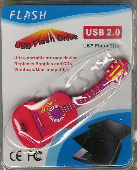 COLOR ROJIZO - ARTÍSTICO CON FORMA DE GUITARRA ELECTRÓNICA CAPACIDAD OCHO (8) GIGABYTES, MARCA "CE FC", ESPECIAL PARA REGALO.