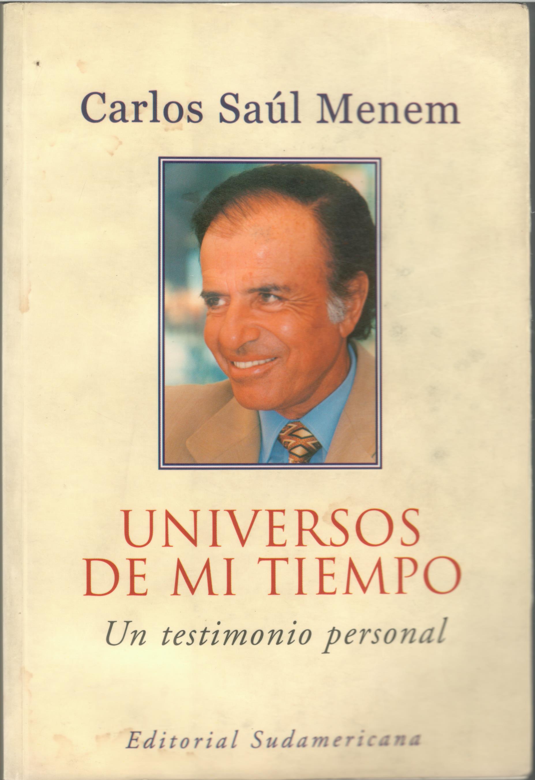 LIBRO "UNIVERSOS DEL  TIEMPO. UN TESTIMONIO PERSONAL.", DE CARLOS SAÚL MENEM, EDITORIAL SUDAMERICANA, TERCERA EDICIÓN, ARTES GRÁFICAS PISCIS, LIBRO USADO, INCLUYE FOTOGRAFÍAS EN BLANCO Y NEGRO, 325 PÁGINAS, BUENOS AIRES, ARGENTINA, SEPTIEMBRE DE 1999. $ 3.000