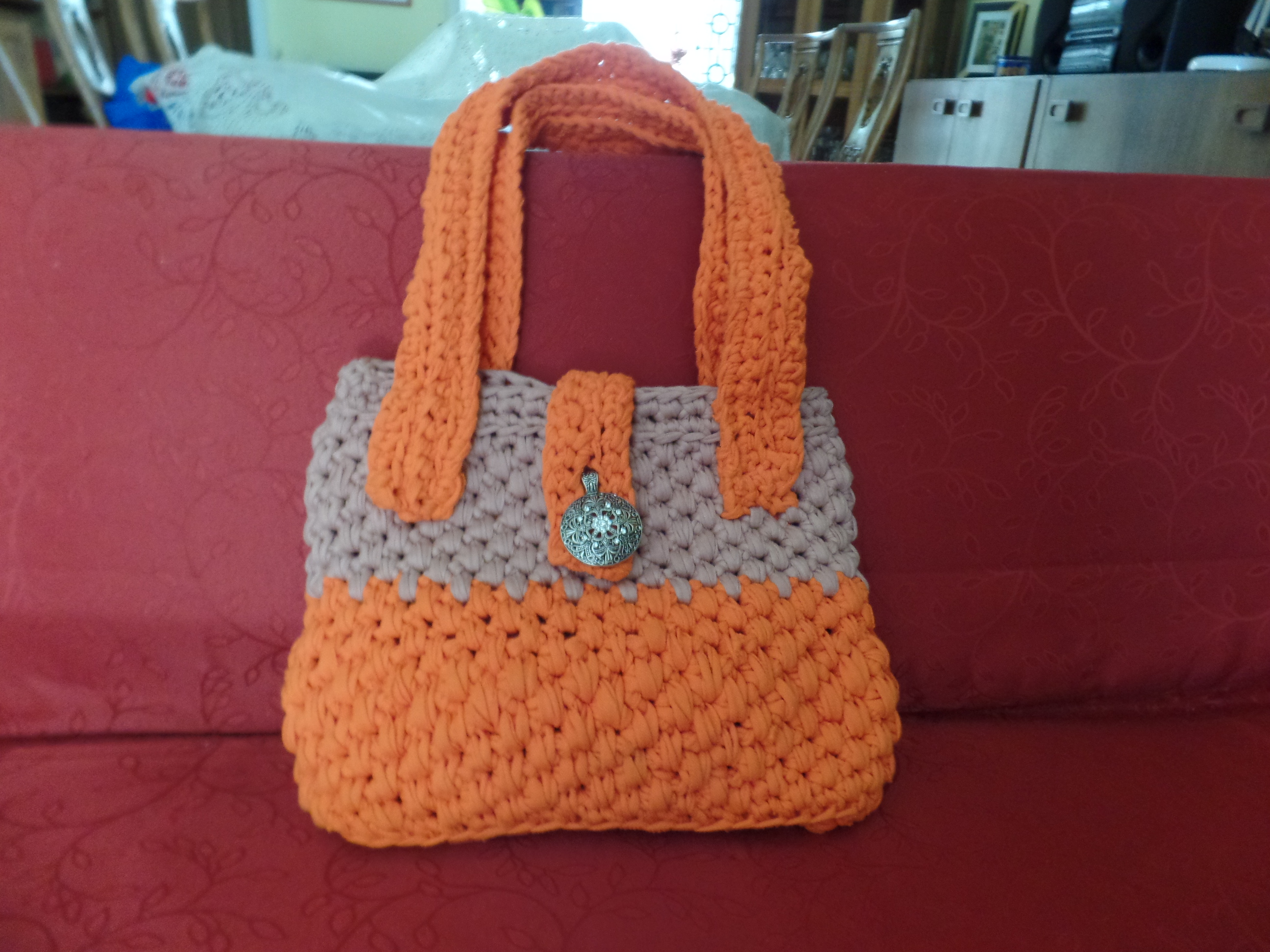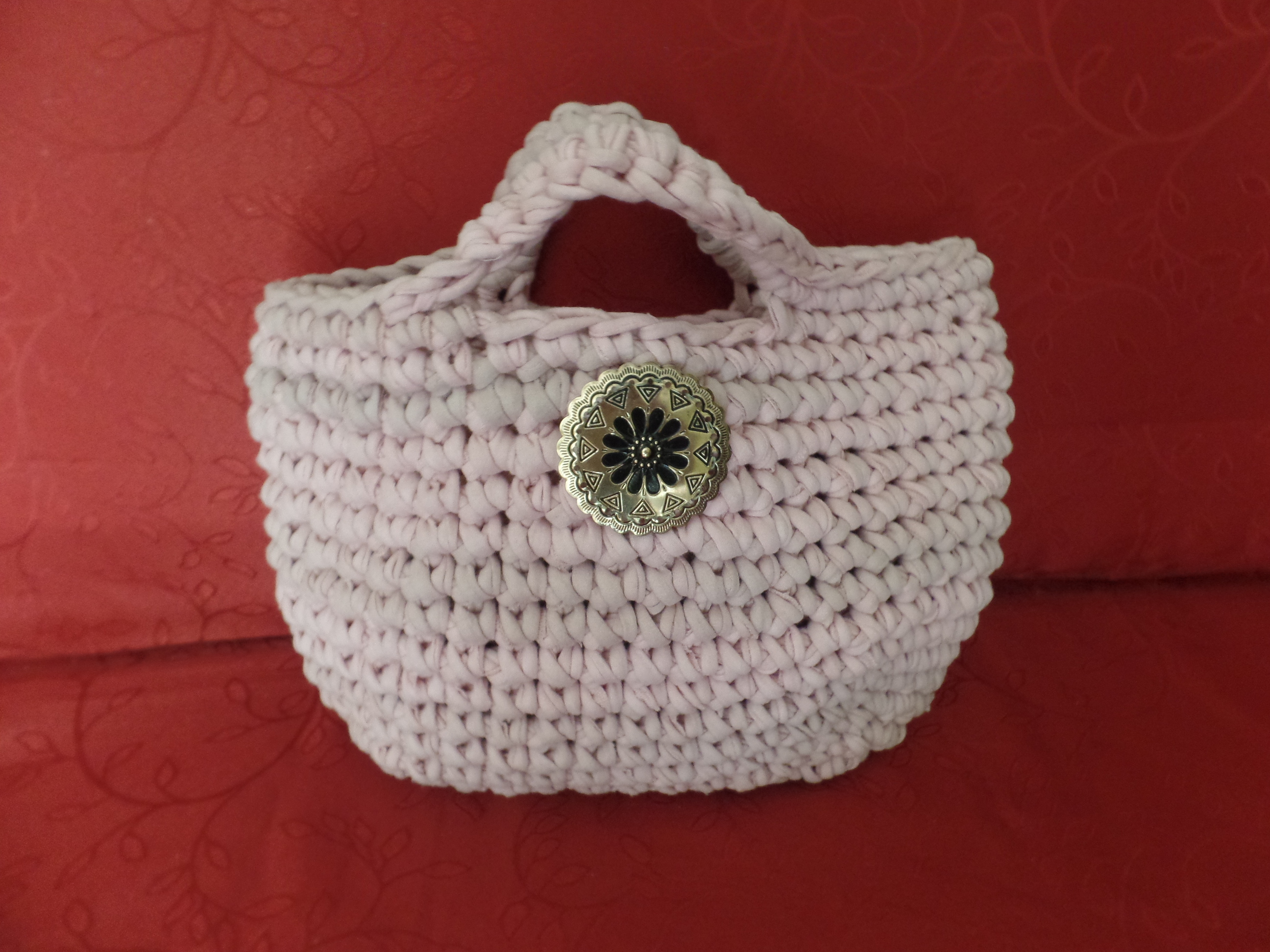 TEJIDO A CROCHET EN TRAPILLO, PRÁCTICO. ASA CORTA. ADORNO