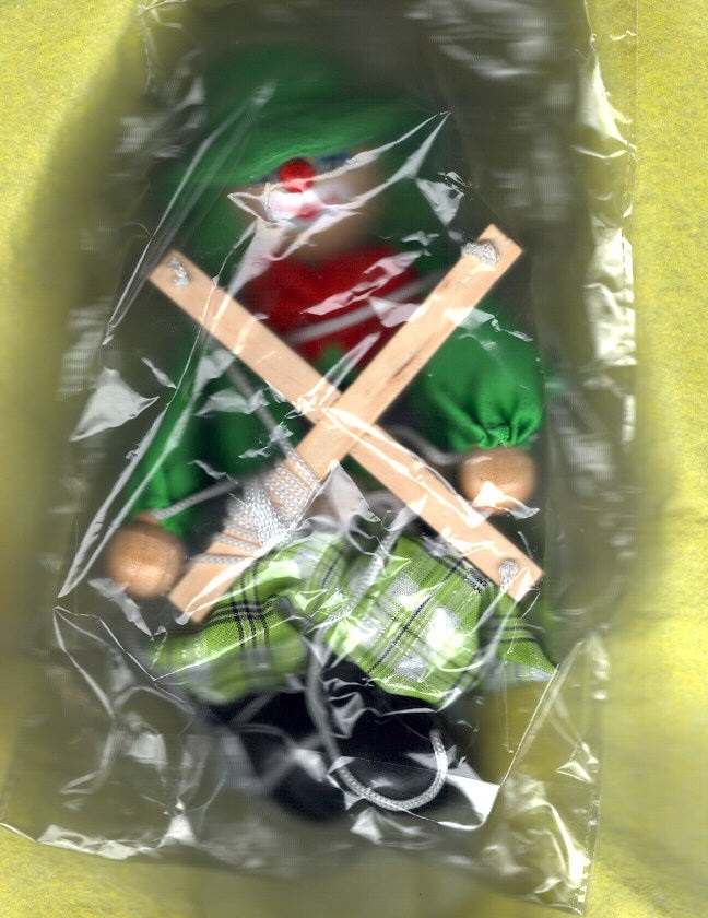 INDIVIDUAL CON FORMA DE PAYASO Y MANEJADA CON HILOS, FABRICADA