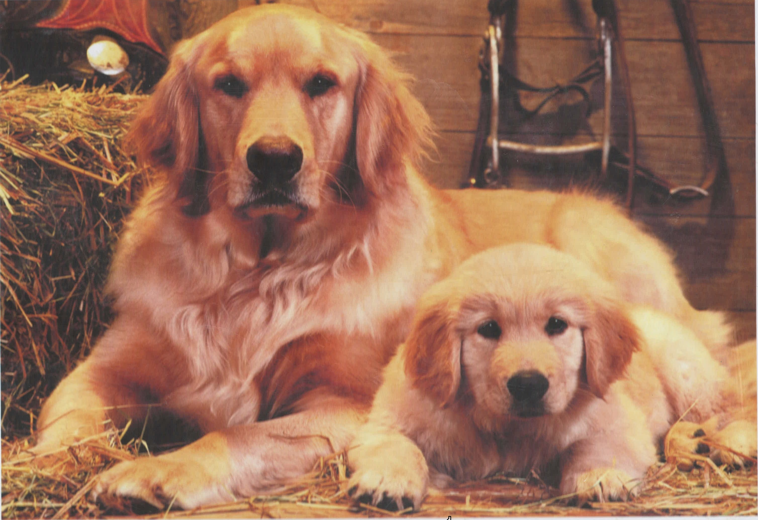 ESCENA DE PERROS TIERNOS MIRANDO FRONTALMENE, MAMÁ PERRA E HIJO(A),
