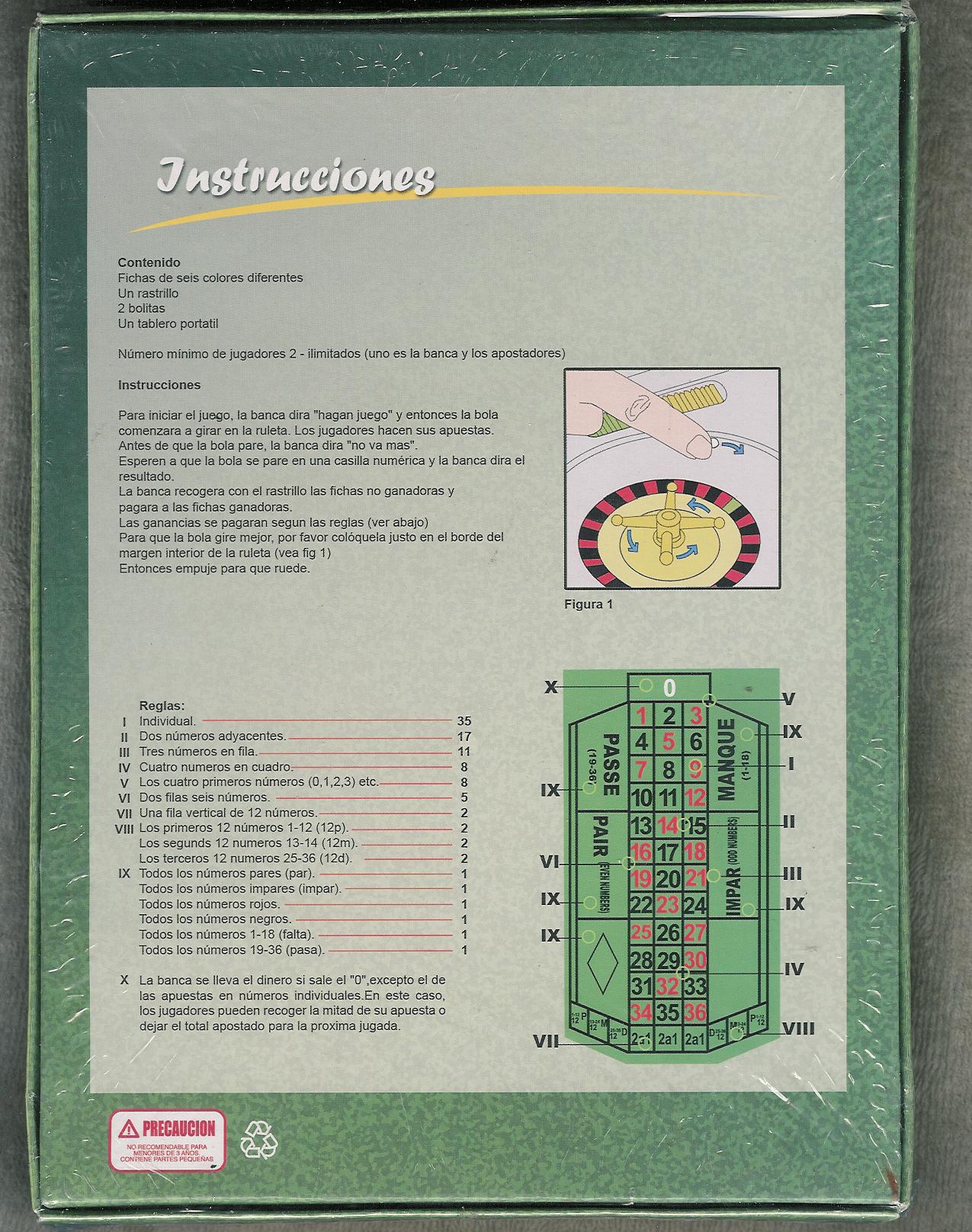JUEGO DE SALÓN RULETA "NOBLE TOYS" - INSTRUCCIONES