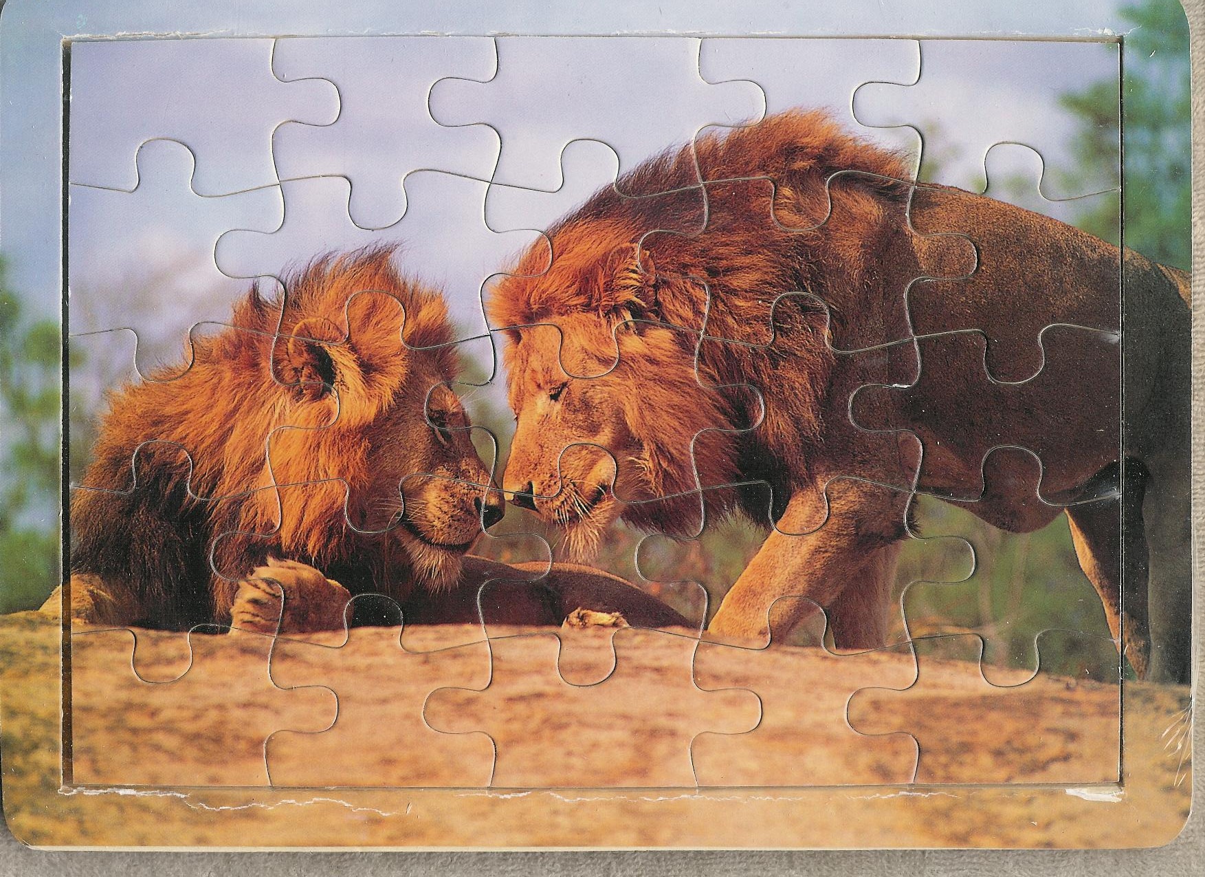 ROMPECABEZAS DOS LEONES EN LA SÁBANA AFRICANA DE UNOS 30 X 20