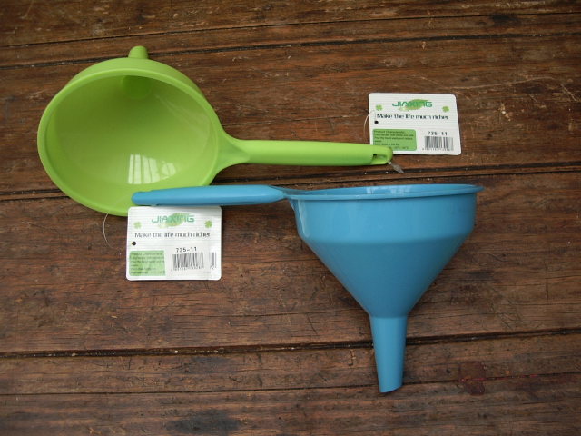 EMBUDO CON MANGO - MUY PRÁCTICO PARA EVITAR DERRAMAR PARTE DE LOS LÍQUIDOS QUE SE TRASVASIJAN, EN COLORES VERDE, AZUL Y