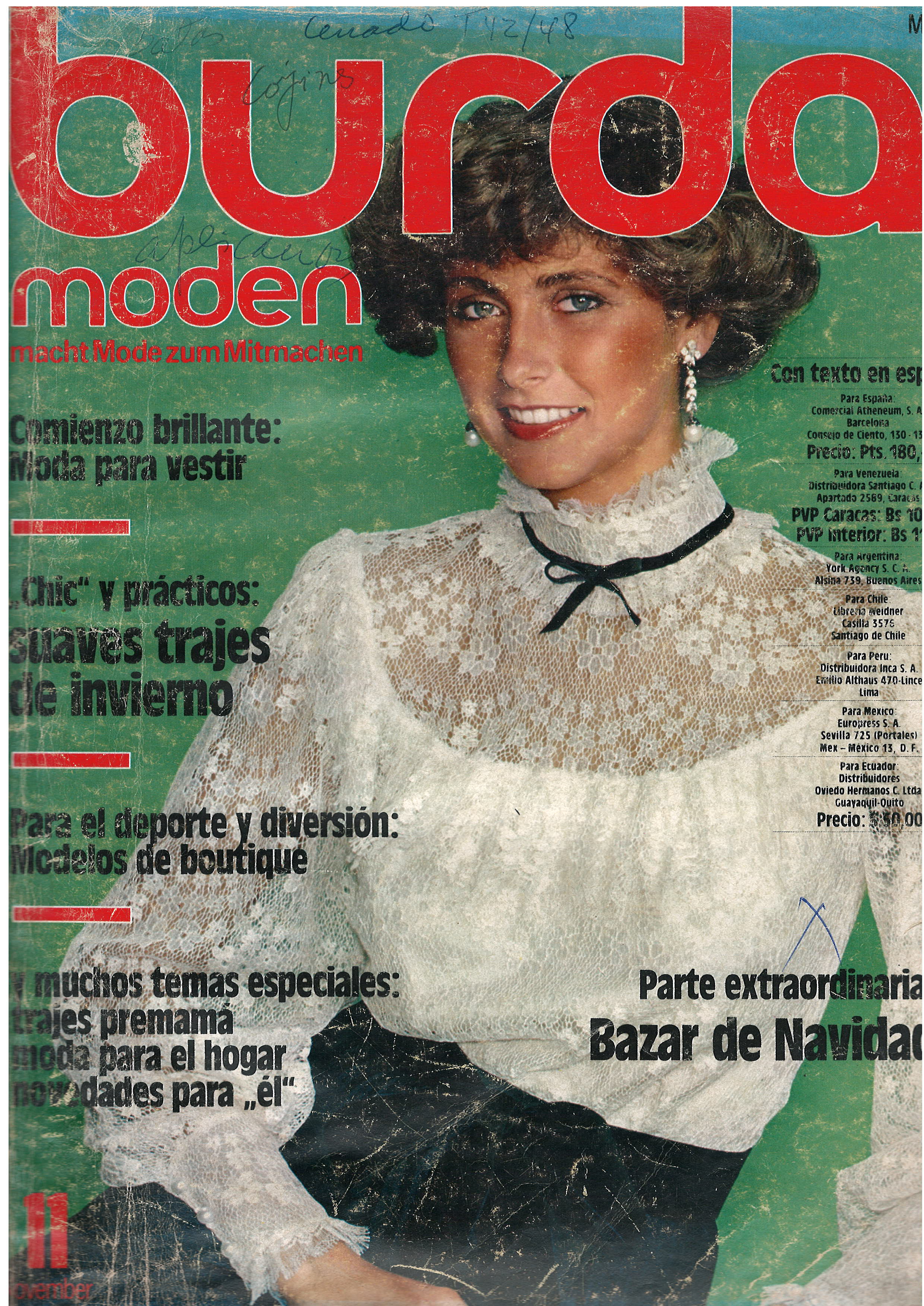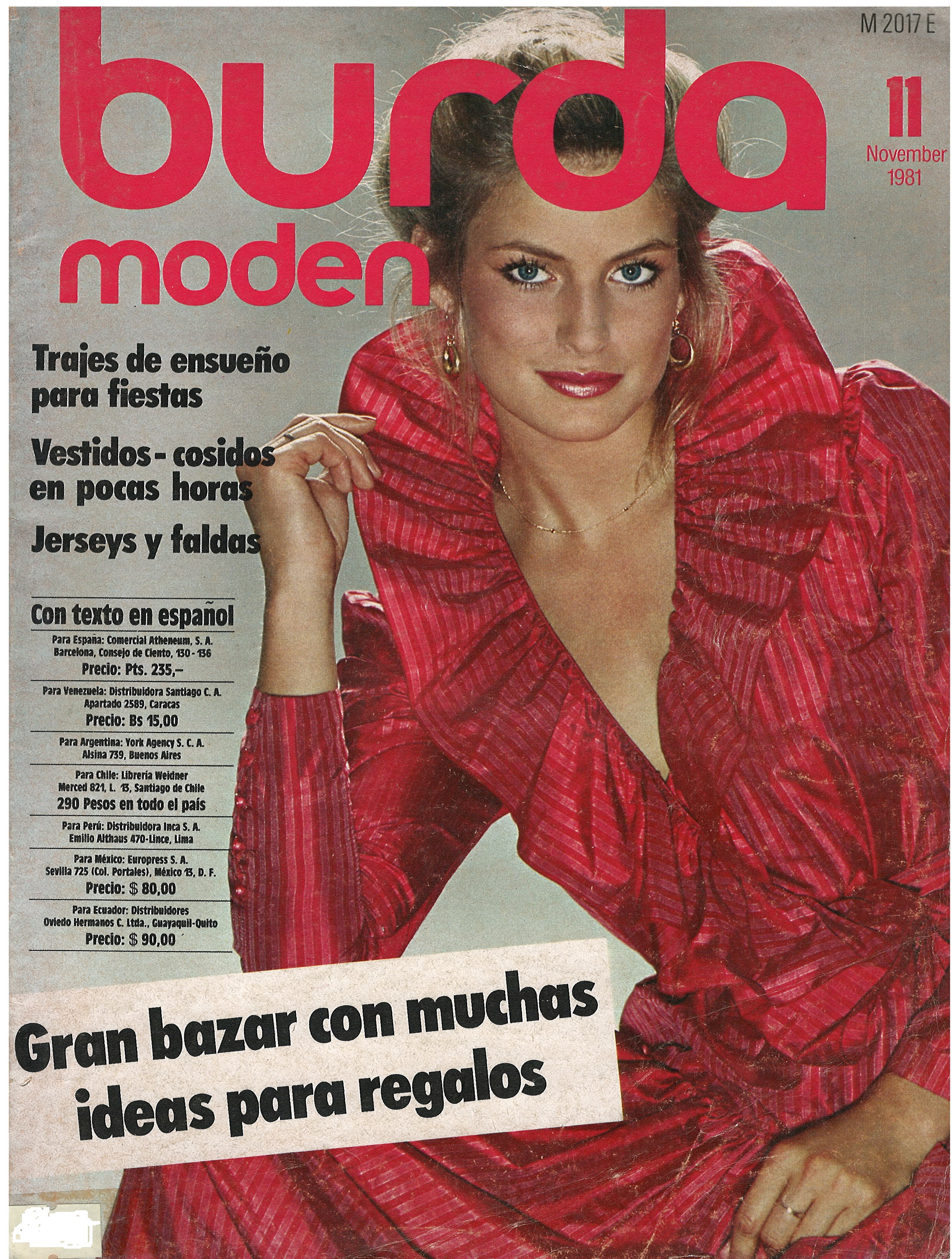 REVISTA "BURDA MODEN", N° 11, NOVEMBER 1981 / TRAJES DE ENSUEÑO PARA FIESTAS / VESTIDOS - COSIDOS EN POCAS HORAS / JERSEYS Y FALDAS / GRAN BAZAR CON MUCHAS IDEAS PARA REGALOS / IMPRESA EN ALEMÁN PERO CON TEXTO SUPLEMENTO EN ESPAÑOL. $ 5.000