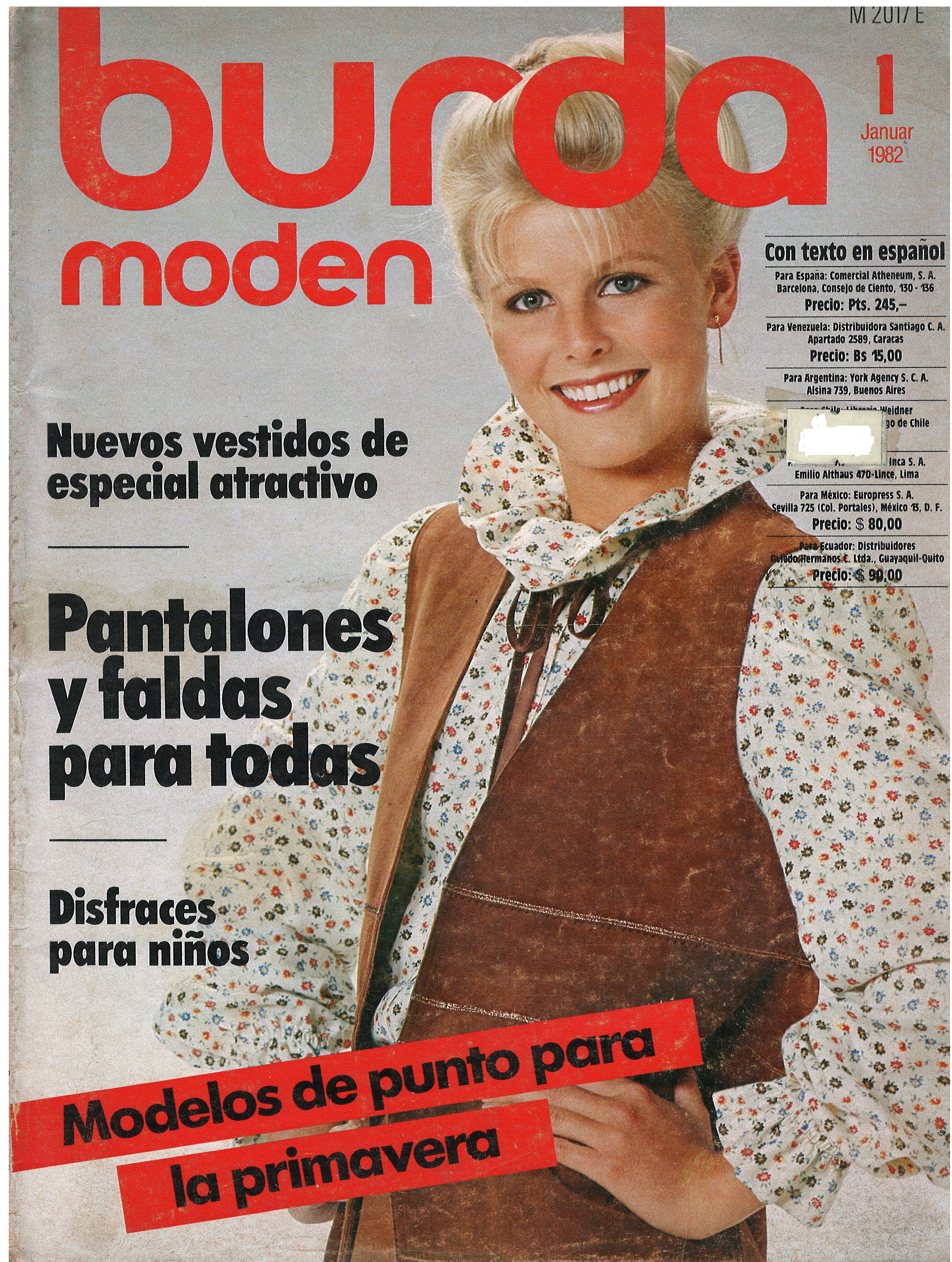 REVISTA "BURDA MODEN", N° 1, JANUAR 1982 / NUEVOS VESTIDOS DE ESPECIAL ATRACTIVO / PANTALONES Y FALDAS PARA TODAS / DISFRACES PARA NIÑOS / MODELOS DE PUNTO PARA LA PRIMAVERA / IMPRESA EN ALEMÁN PERO CON TEXTO SUPLEMENTO EN ESPAÑOL. $ 5.000