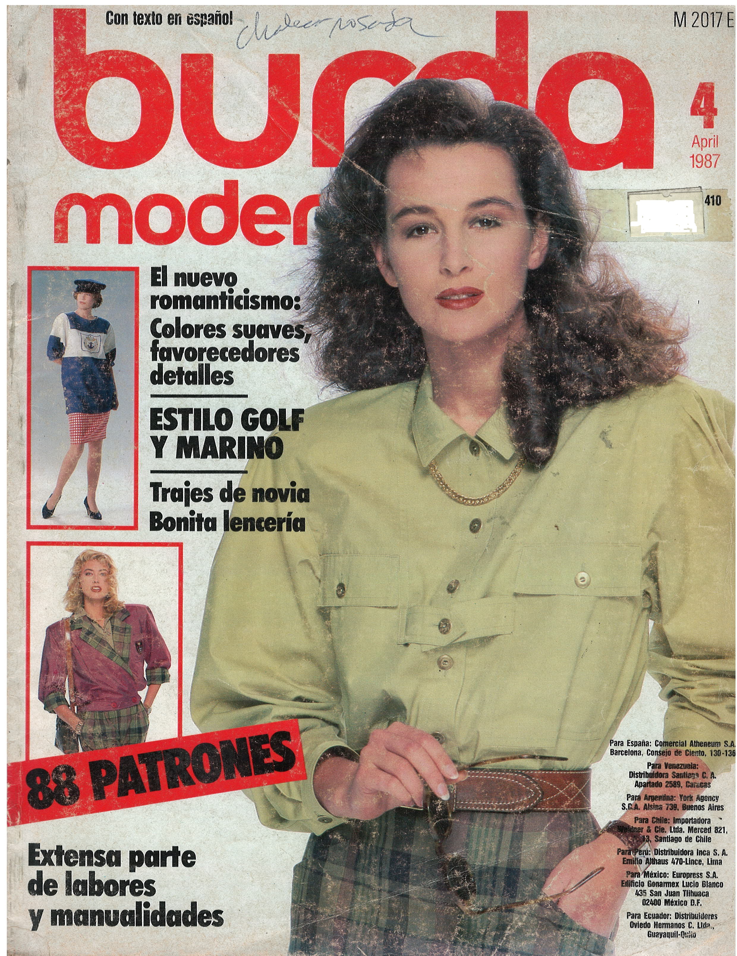 REVISTA "BURDA MODEN", N° 4, APRIL 1987 / EL NUEVO ROMANTICISMO: COLORES SUAVES FAVORECEDORES DETALLES / ESTILO GOLF Y MARINO / TRAJES DE NOVIA BONITA LENCERÍA / 88 PATRONES / EXTENSA PARTE DE LABORES Y MANUALIDADES / IMPRESA EN ALEMÁN PERO CON TEXTO SUPLEMENTO EN ESPAÑOL. $ 5.000