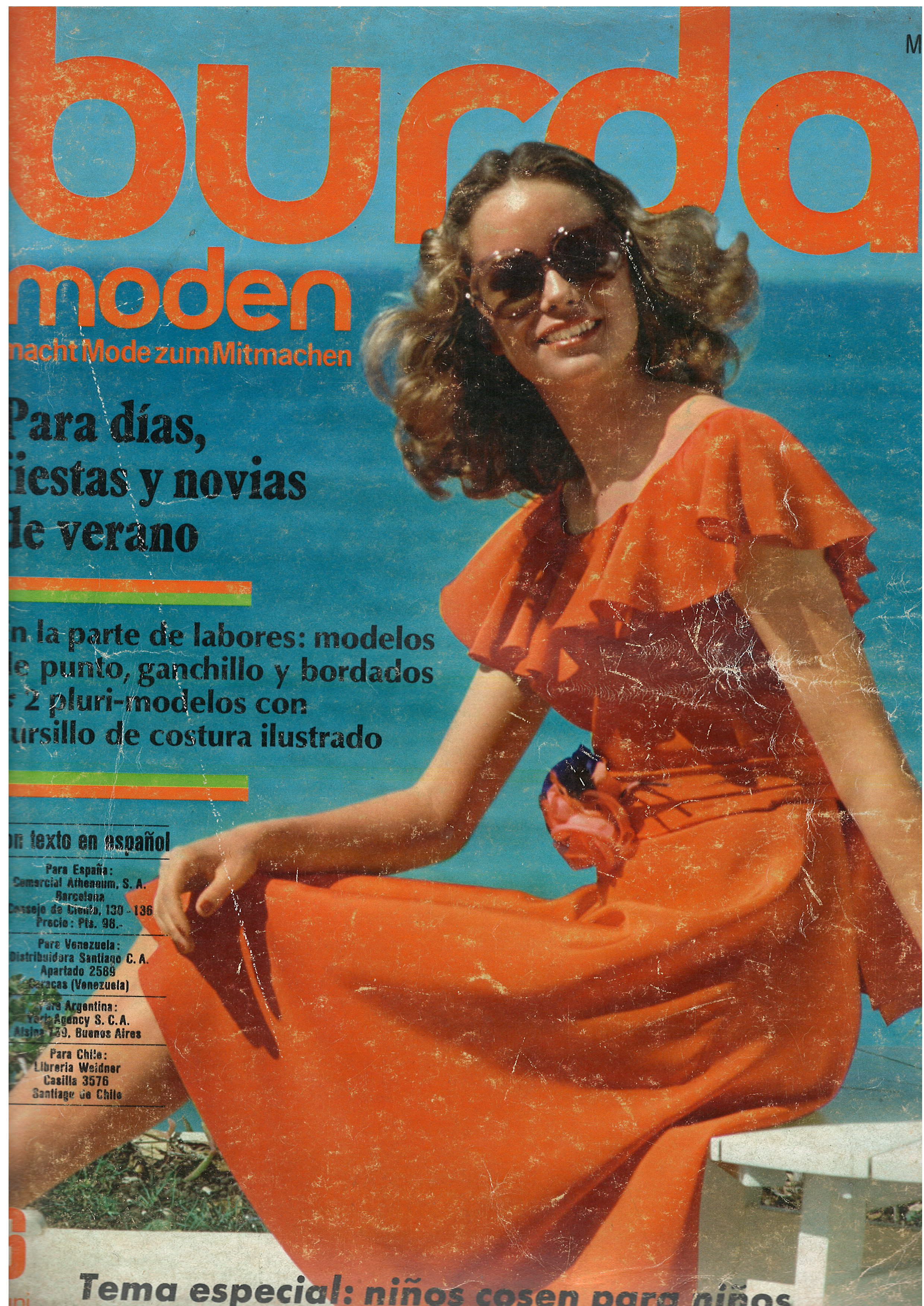 REVISTA "BURDA MODEN", N° 6, JUNI 1974 / PARA DÍAS, FIESTAS Y NOVIAS DE VERANO / EN LA PARTE DE LABORES: MODELOS DE PUNTO, GANCHILLO Y BORDADOS * 2 PLURIMODELOS CON CURSILLO DE COSTURA ILUSTRADO / TEMA ESPECIAL: NIÑOS COSEN PARA NIÑOS / IMPRESA EN ALEMÁN PERO CON TEXTO SUPLEMENTO EN ESPAÑOL. $ 5.000