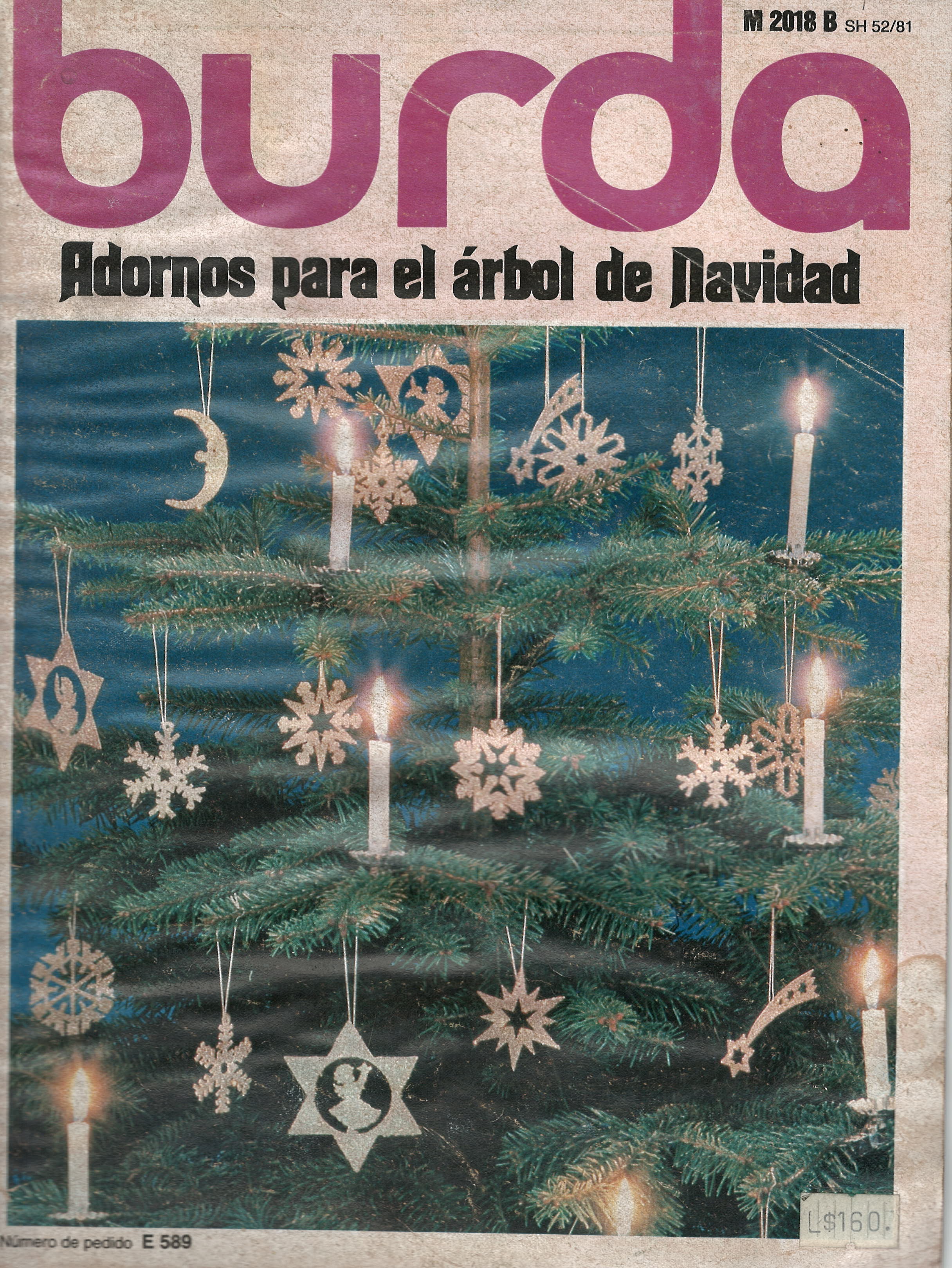 REVISTA "BURDA" NÚMERO DE PEDIDO E 589 ADORNOS PARA EL ÁRBOL DE NAVIDAD / IMPRESA EN ESPAÑOL Y CON TEXTO DE INSTRUCCIONES EN ESPAÑOL 39 PÁGINAS. $ 3.000
