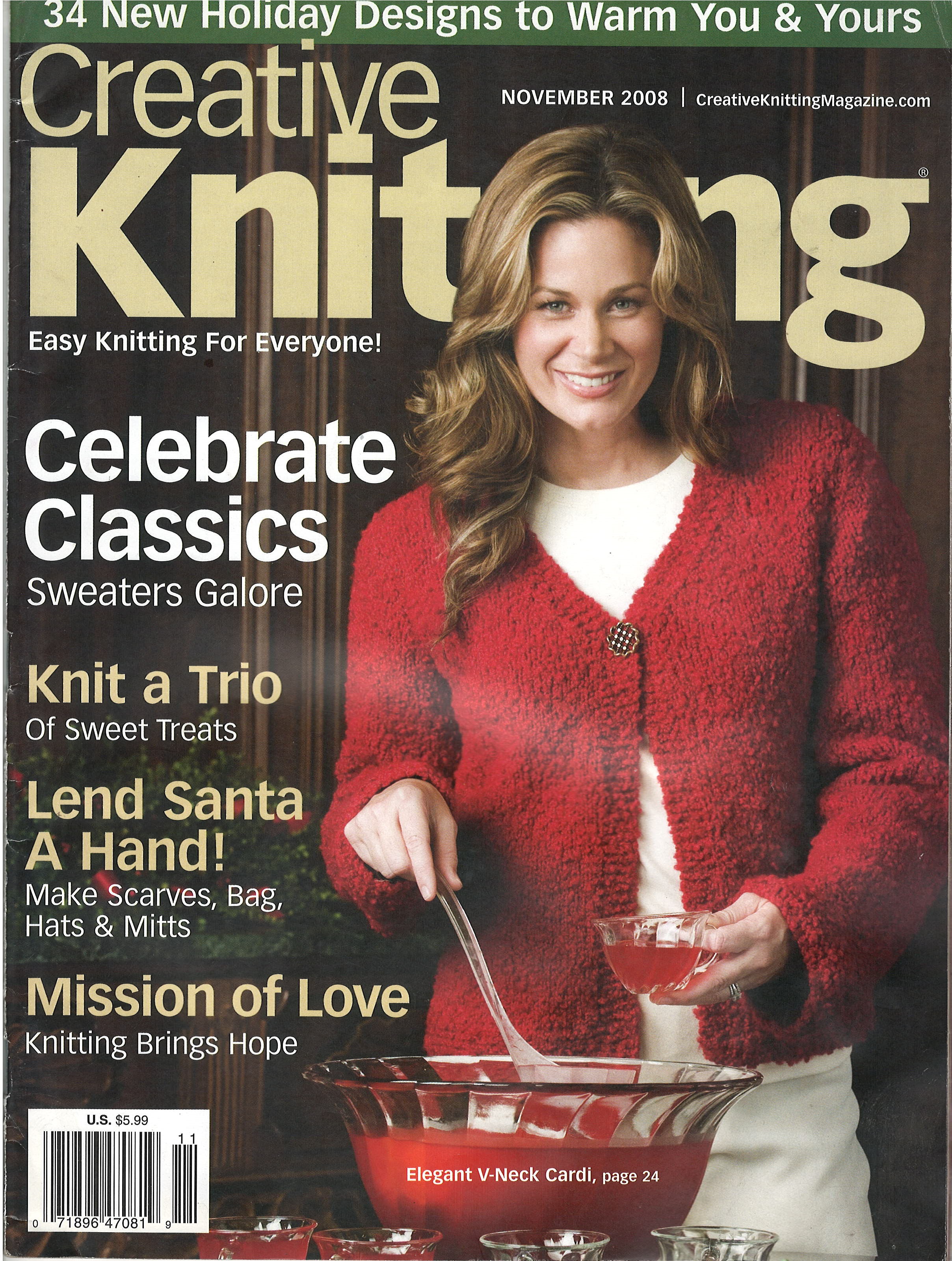 REVISTA "CREATIVE KNITTING" N° 34 NOVEMBER 2008 / NEW HOLIDAY DESIGNS TO WARM YOU & YOURS / CELEBRATE CLASSICS SWATERS GALORE / KNIT A TRIO OF SWEET TREATS / LEND SANTA A HAND! / MISSION OF LOVE KNITTING BRINGS HOPE / 98 PÁGINAS ESCRITAS EN IDIOMA INGLÉS /  NO INCLUYE TEXTO INSTRUCTIVO EN ESPAÑOL. $ 4.000