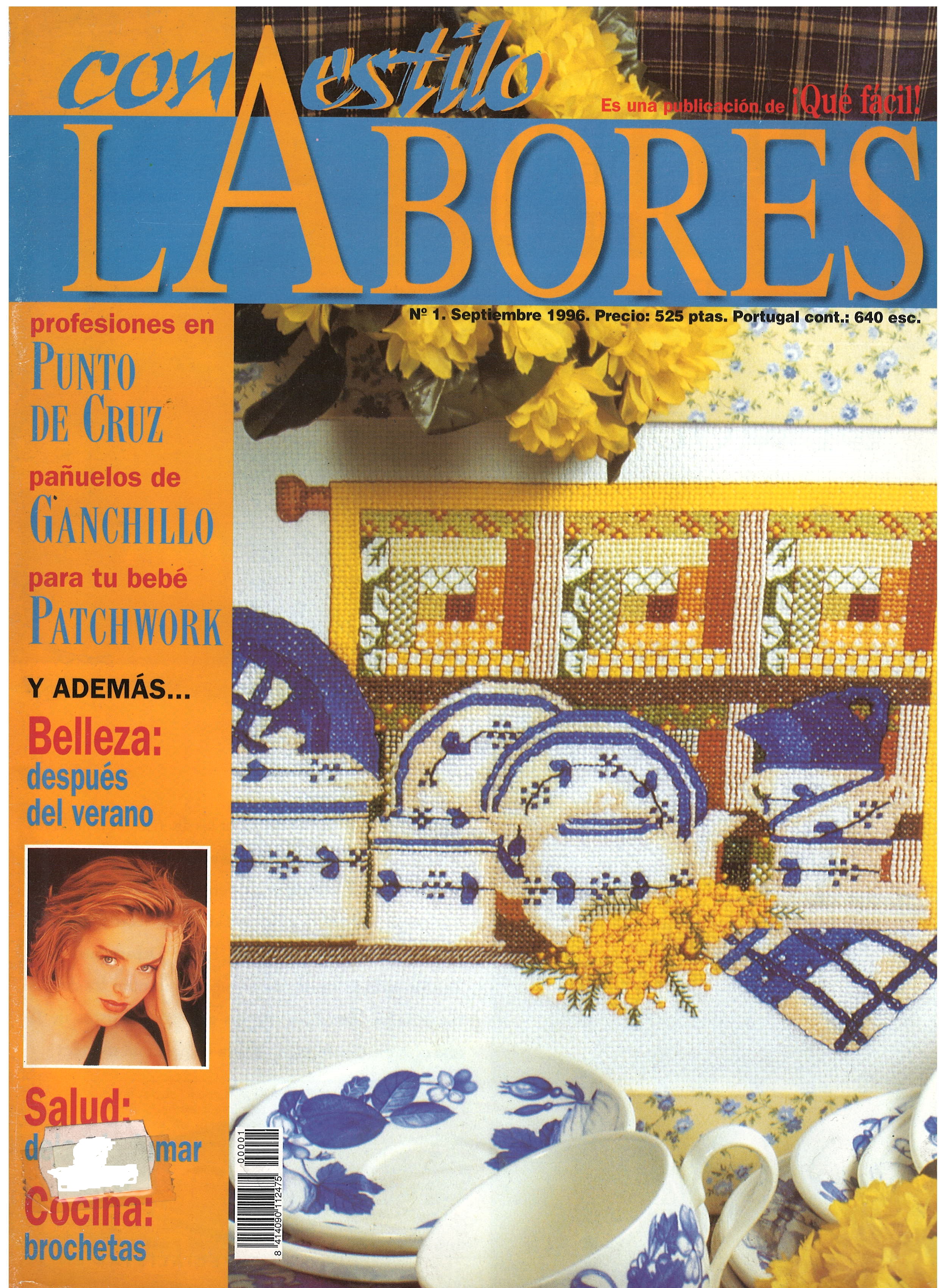 REVISTA "LABORES CON ESTILO", N° 1, SEPTIEMBRE DE 1996 / PROFESIONES EN PUNTO DE CRUZ / PAÑUELOS CON GANCHILLO / PARA TU BEBÉ PATCHWORK / BELLEZA: DESPUÉS DEL VERANO / SALUD: DEJAR DE FUMAR / COCINA: BROCHETAS. $ 40.000