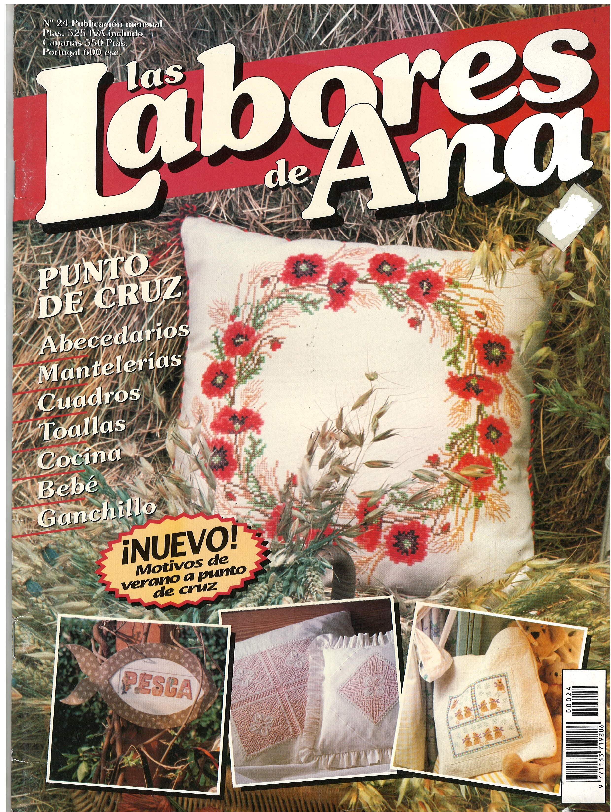 REVISTA "LAS LABORES DE ANA", N° 24, BARCELONA ESPAÑA 1993 / PUNTO DE CRUZ / ABECEDARIOS / MANTELERÍAS / CUADROS / TOALLAS / COCINA / BEBÉ / GANCHILLO / ¡NUEVO! MOTIVOS DE VERANO A PUNTO DE CRUZ. $ 4.000